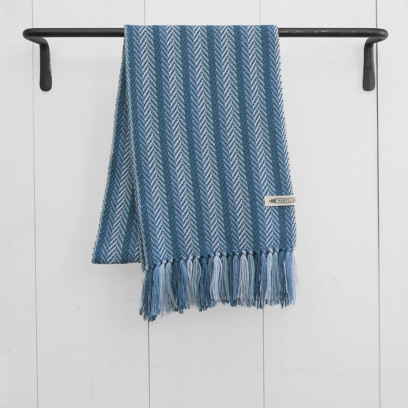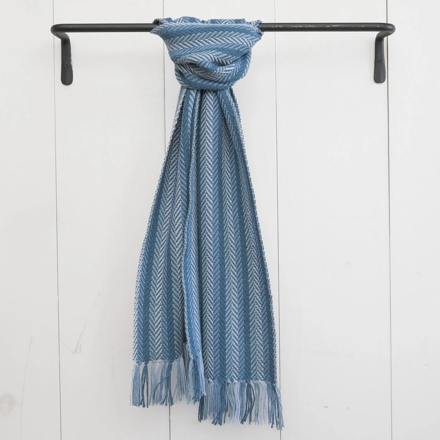 Featuring a harmonious blend of multiple shades of blue, accented by a variegated stripe, this alpaca scarf exudes a serene elegance. It's luxuriously soft, offering warmth without the weight, making it suitable for year-round use. Crafted from alpaca fiber, it's not only durable and gentle on the skin but also naturally hypoallergenic, making it an excellent option for individuals with sensitive skin.