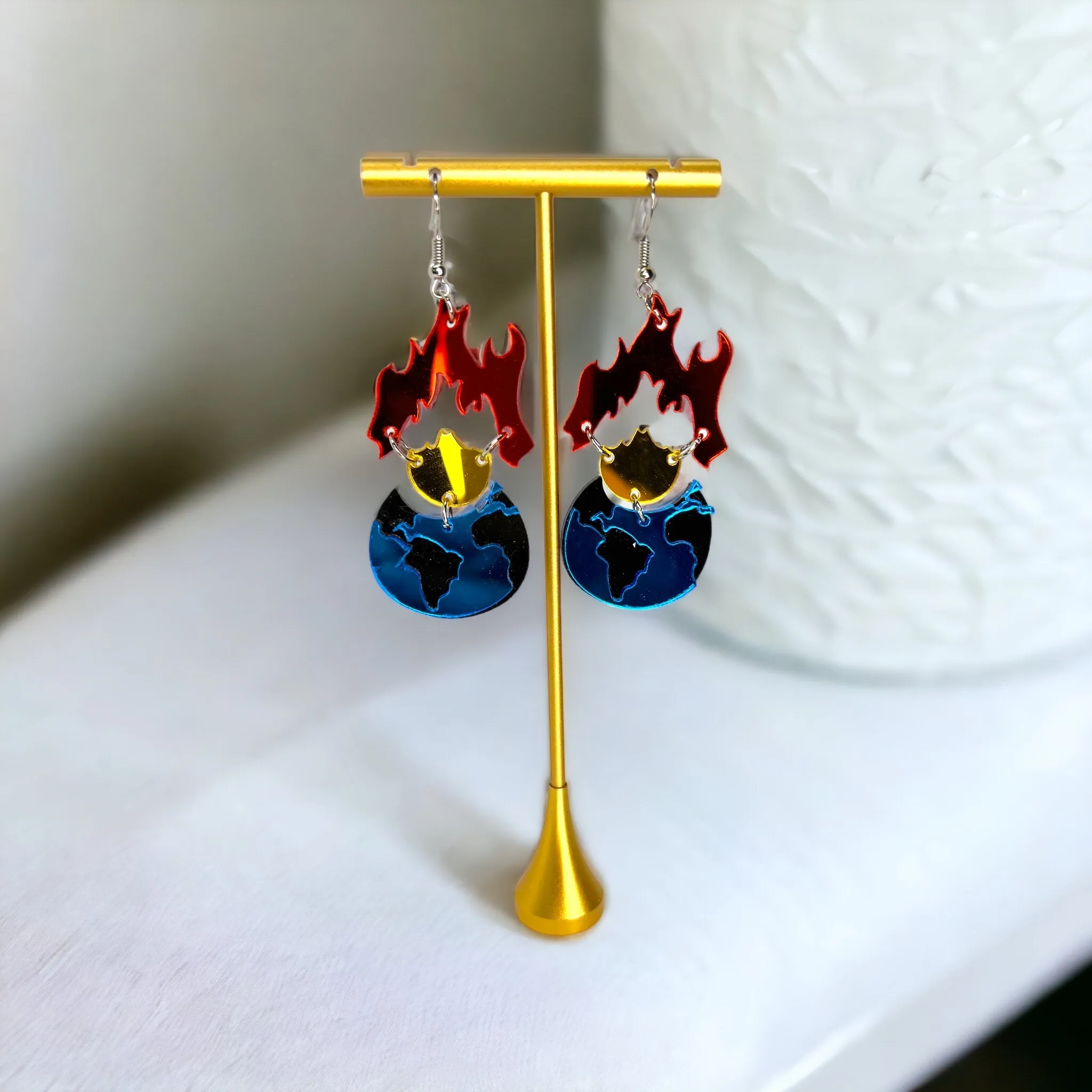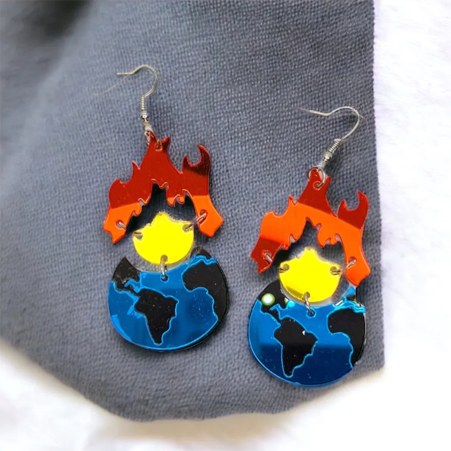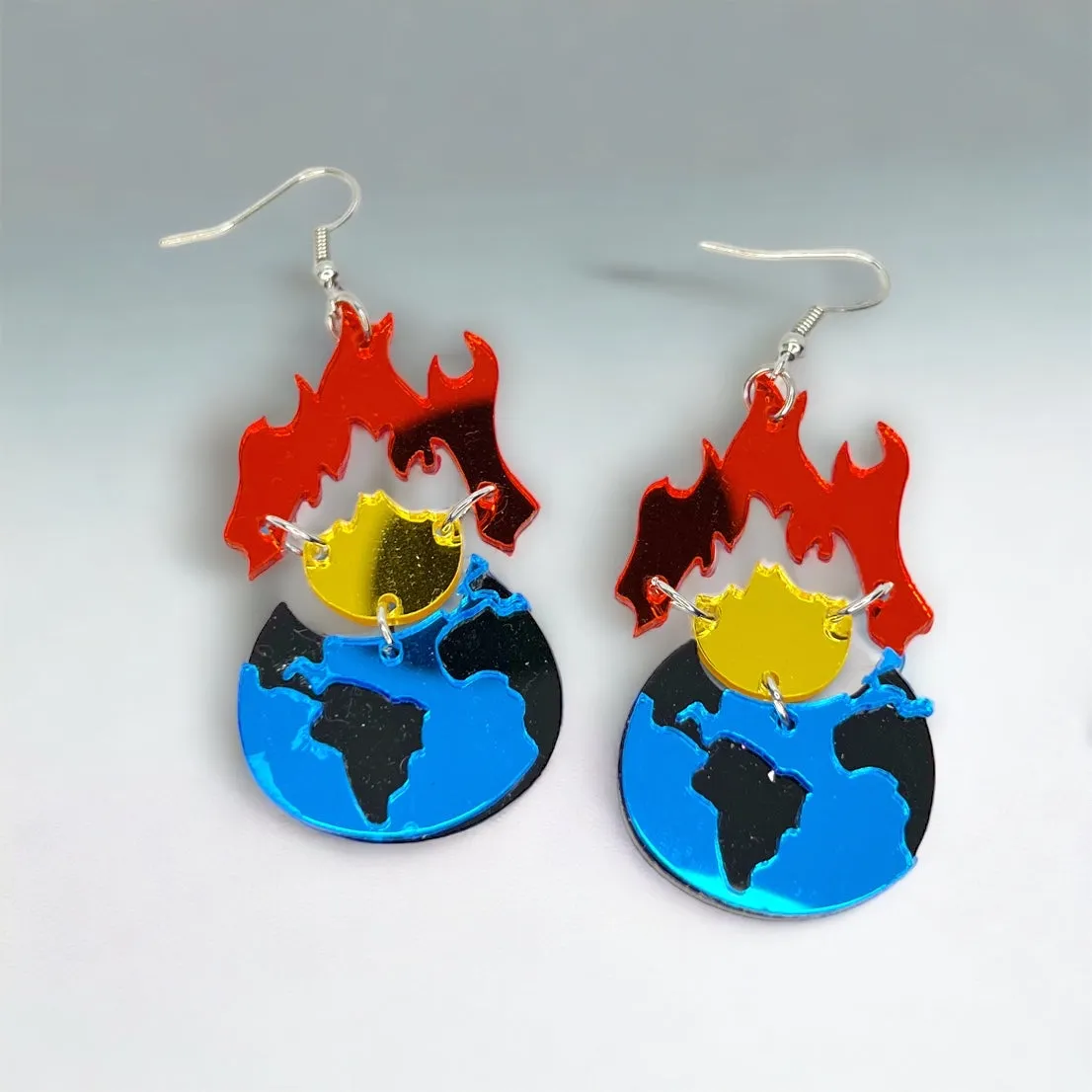 Raise awareness and make a statement with our impactful climate change dangle earrings, a tribute to environmental consciousness. Meticulously designed, each earring features symbols and elements that reflect the urgency of climate action, allowing you to wear your commitment to a sustainable future. Showcase your dedication and spark conversations with these meaningful accessories that combine style with a powerful message.