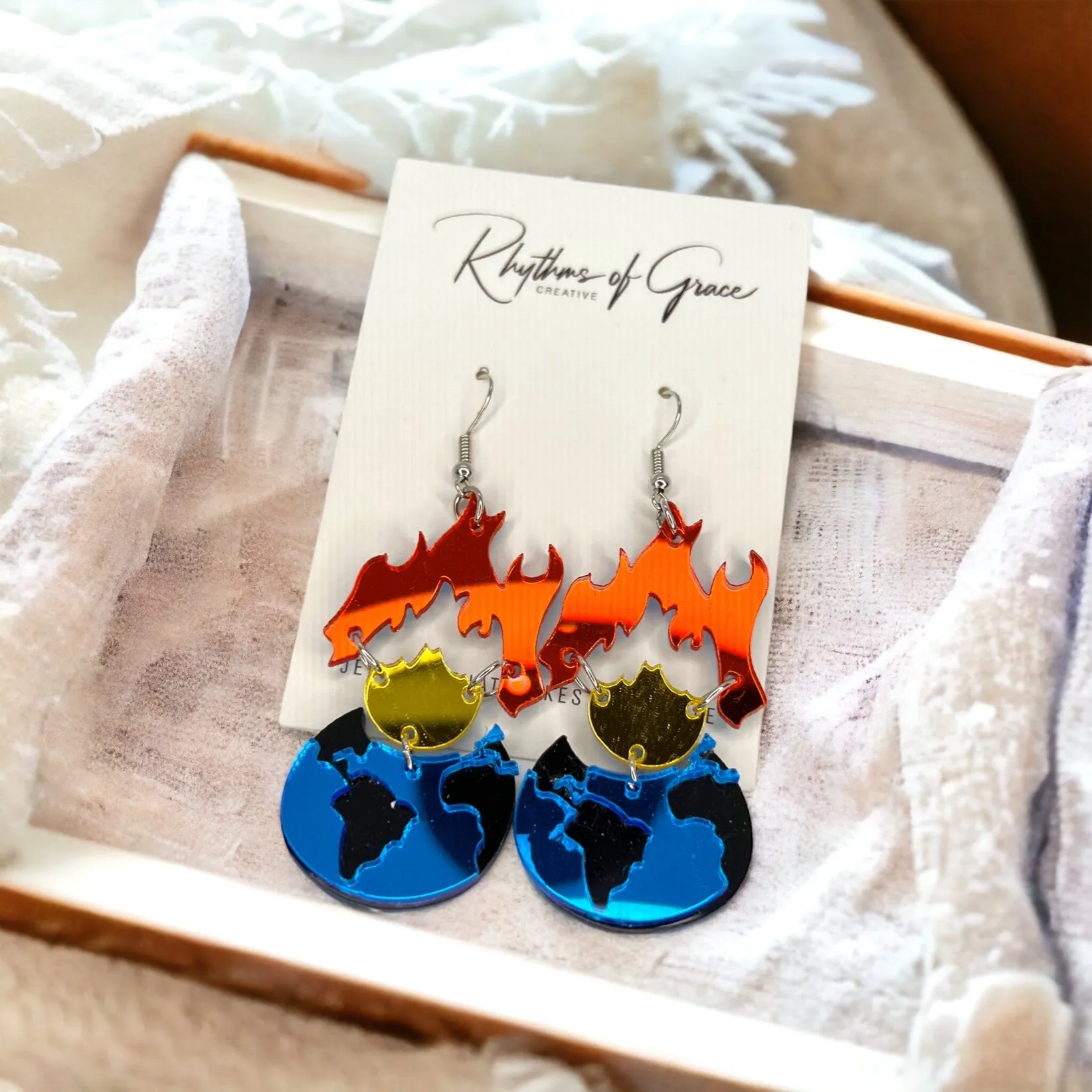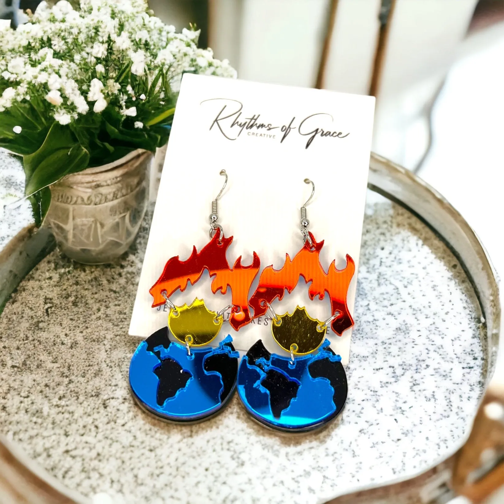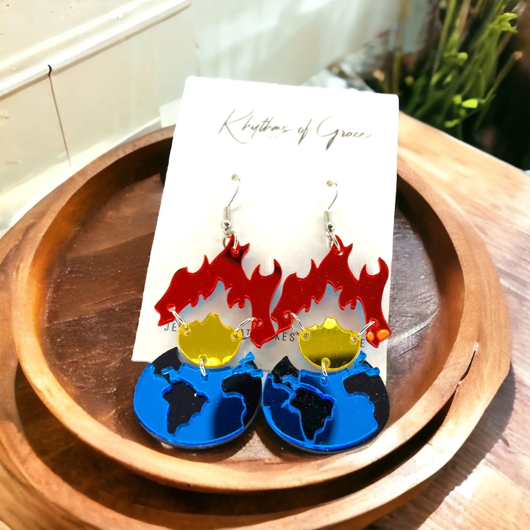 Raise awareness and make a statement with our impactful climate change dangle earrings, a tribute to environmental consciousness. Meticulously designed, each earring features symbols and elements that reflect the urgency of climate action, allowing you to wear your commitment to a sustainable future. Showcase your dedication and spark conversations with these meaningful accessories that combine style with a powerful message.
